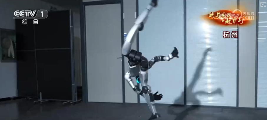 宇树科技股份有限公司高远介绍,它有一个非常强的滞空时间,瞬间又爆发出非常强劲的力量。落地的时候没有用手部或者说用膝盖去支撑形成三角关系,而是两条腿直接站在地上,这个难度非常大。